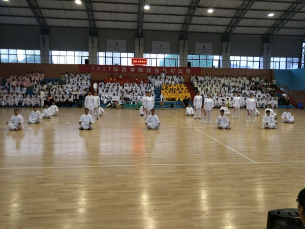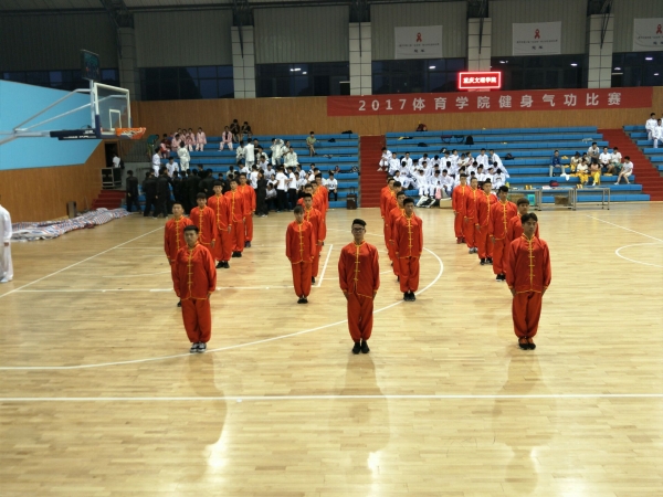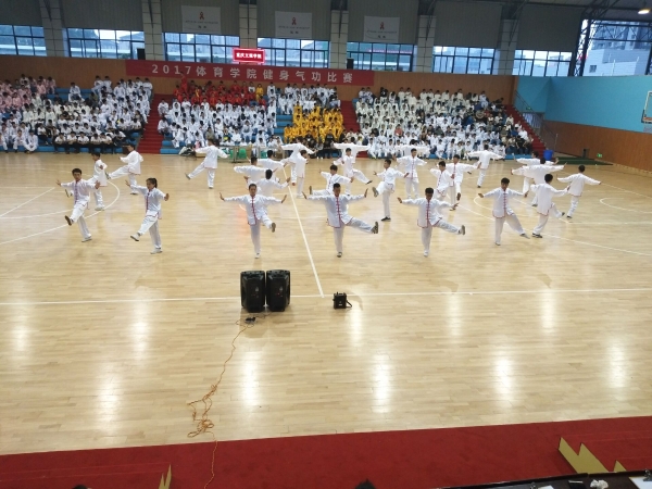 为深入贯彻落实国家大力推广全民健身的战略,进一步推动健身气功项目在高校的发展,提高健身热情、增强体质,扎实践行学校实践应用性培养目标,强化学生专业技能训练,今年会于21日下午18:00在红河A区篮球馆举办了“2017今年会健身气功”比赛,今年会党总支书记李旻、副书记袁高燕、副院长孔庆波出席开幕现场。今年会非毕业班全体学子以班级为单位参赛,共计26个参赛单位。开幕式由夏赟主持,比赛裁判由今年会武术技击类课程组专业教师担任。