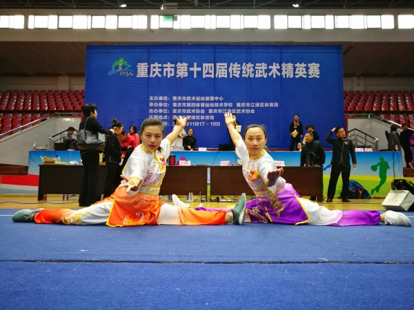 由重庆市武术运动管理中心举办的第十四届传统武术精英赛在江津体育馆举行。为了锻炼专项学生的实践应用能力、检验武术代表队训练水平及为了更好的完成武术课程组所承担的市级教学改革项目,闫玉峰与郭健平两位老师分别带领武术代表队与2015级武术专选班参加了本次比赛。参赛队员以完美的表现完成了所参加的比赛,与重庆各地区的武林高手比拼后,获得优异的成绩。其中2015级武术专选班获得一等奖5项,二等奖5项,三等奖13项。武术代表队获得一等奖4项,二等奖7项,三等奖7项。