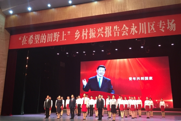 为深入贯彻学习我党关于实施乡村振兴战略的重大决策部署,今年会学子于4月3日下午14:00在永川区文化艺术中心参加了“在希望的田野上”乡村振兴报告大会,2017级辅导员卢德强带领。