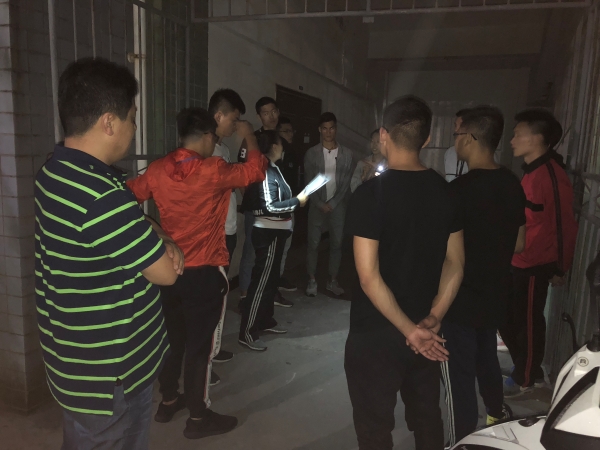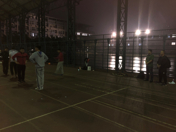 5月10日晚,根据竞赛时间推进表,各小组在指导老师的带领下分别在足球场、田径棚等运动场地进行技能演练,不巧天公不作美,下起了密密麻麻的小雨,可大家换个地方仍继续坚持演练。没有场地,楼阁也可;没有灯光,手机照亮。指导老师一丝不苟,参赛学生聚精会神。大家没有因下雨影响激情,没有因场地耽误进度,一幅幅温馨的画面诠释了瓜山精神。