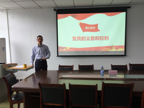 袁高燕副书记以“为什么想加入党?”这个问题为切入点拉开此次主题党课的帷幕;此后,他分别为同学们详细地讲解了党员的义务、党员的权利以及相互的关系三个问题;最后他要求各位同学必须从思想上和行动上向党组织靠近,严格要求自己,并衷心希望各位同学早日成为组织的一员。