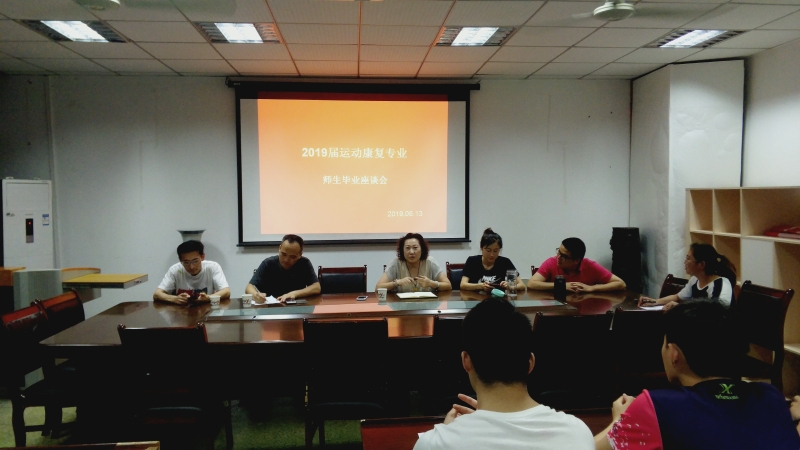 为强化运动康复专业的建设,今年会于2019年6月13日晚20:00点在知津楼C502召开了2019届运动康复专业毕业生代表座谈会,会议由运动康复系主任杨艳老师主持,相关专业教师及2015级运动康复专业全体学生参加会议。