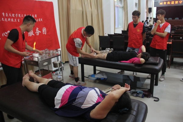 活动现场由陈食街道办事处宣传统战委员张梓榆主持,永川区政协委员、永川区“非遗香十二”传承人、永川区桢楠香有限公司负责人张益丽首先进行了健康养生知识宣讲,并在活动过程中和当地居民进行了互动;今年会游泳专选班学生梁承禹对留守老人、留守儿童进行了“防溺水安全专题教育”,并进行现场演示加深居民对防溺水知识的理解;最后健康小分队为陈食街道的中老年进行免费的测量血压、保健按摩、保健咨询等服务;我们耐心的服务态度及专业技能得到了当地群众的一致好评,永川电视台等新闻媒体进行了全程跟踪采访。