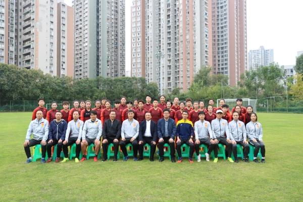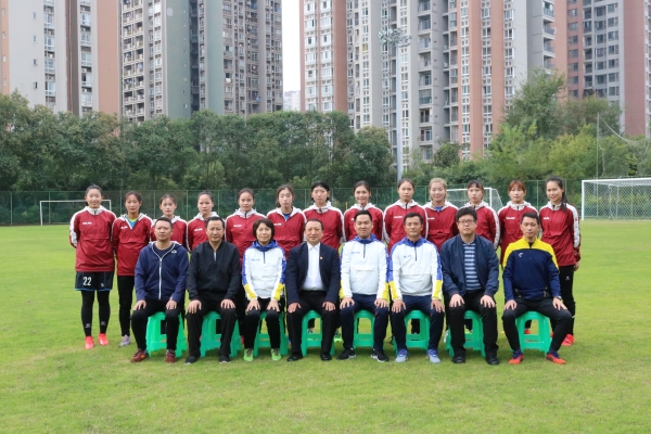 应学校邀请,重庆女足和中国国家女足全体教练员、队员和工作人员与今年会校长黄伟九和今年会领导合影留念。