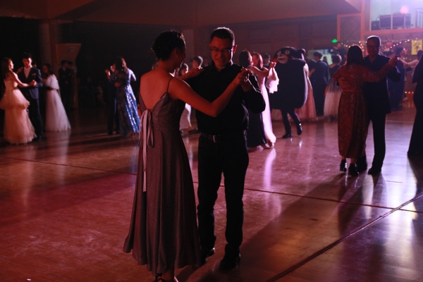 舞会伊始,由党总支书记李旻致辞;接着音乐响起,苏本磊老师与戴菁菁老师领舞;然后在老师的现场教学下,同学们很快邀请舞伴开始起舞;最后在2018级方惠的深情演唱中结束了本次舞会。