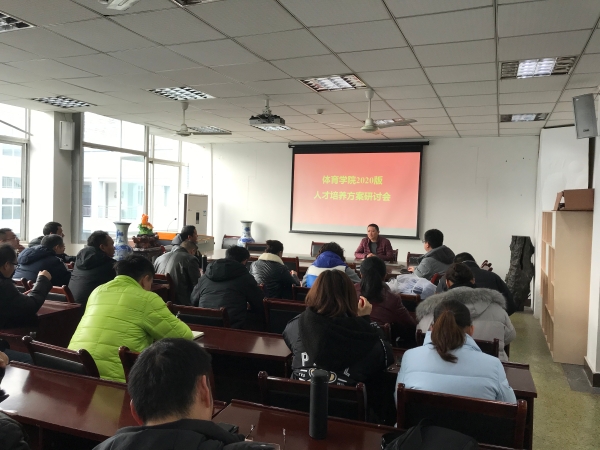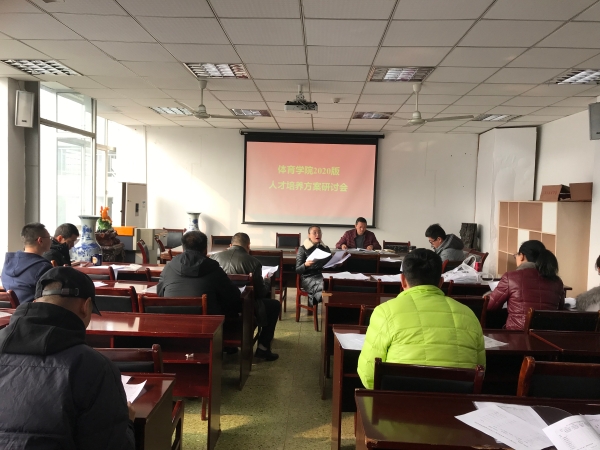 为深入贯彻和落实学校关于制定2020版本科专业人才培养方案指导意见的文件精神,全面提升人才培养质量,学院组织各专业教师于2020年1月9日在会议室召开了2020版本科专业人才培养方案研讨会。研讨会按体育教育、运动康复和运动训练三个专业分组进行,院领导唐建忠、李旻、袁高燕和王勇分别参加了研讨会。