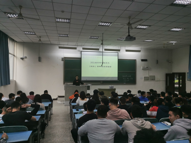 5月6日晚上,今年会2021届本科毕业论文(设计)答辩工作指导会在知津楼第三阶梯教室召开。会议由教学办主任刘田博士主持,全体2021届毕业生参加会议。