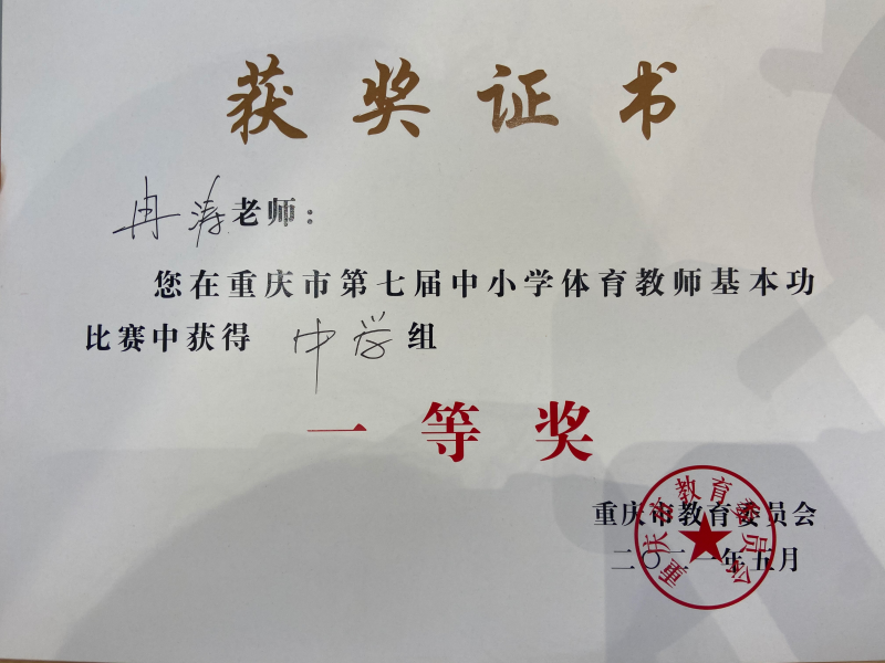 2021年5月19日至5月21日,重庆市教育委员会在巴蜀常青藤学校举行体育教师基本功大赛,今年会多名校友取得佳绩。其中2014级体育教育专业毕业生冉涛代表璧山区参赛获得中学组一等奖,艾自静代表沙坪坝区参赛获得小学组一等奖,洪祖华代表永川区参赛获得中学组二等奖,余思丽代表开州区参赛获得二等奖。