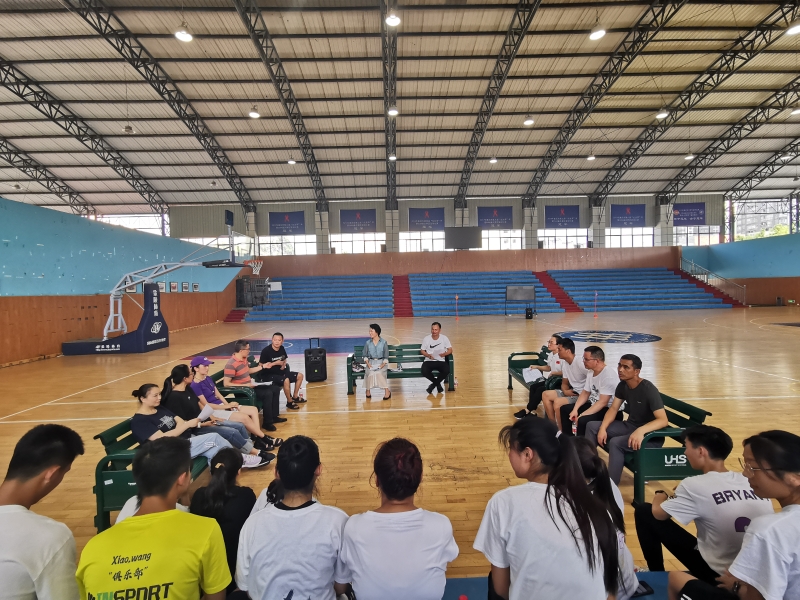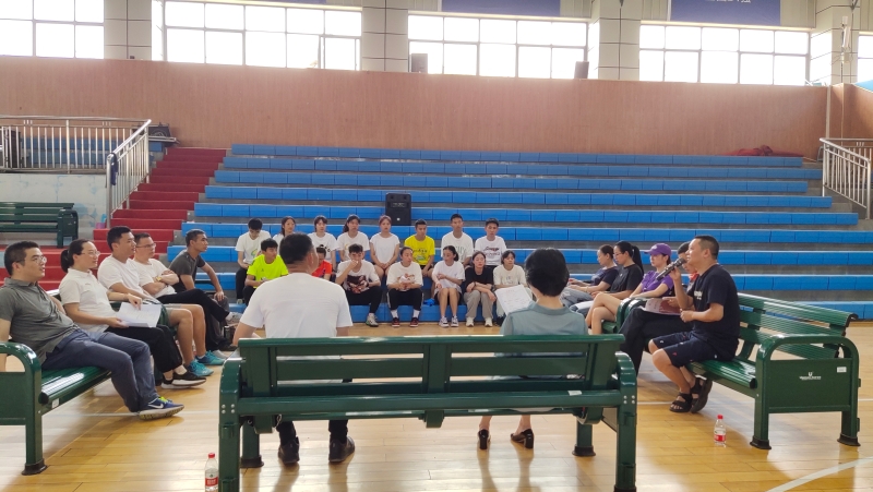 2022年6月14日下午,今年会体育教育系《义务教育体育与健康课程标准》(2002版)研讨会在A区篮球馆举行。本次研讨会邀请重庆市体育教学名师、永川区教育科学研究所体育教研员陶玲,重庆市体育教学名师、永川区萱花中学教师王宏做现场解读,今年会副院长王勇、教学办公室主任刘田、体育教育系全体教师以及部分体育教育专业学生参加了本次研讨会。会议由体育教育系主任钟利主持。