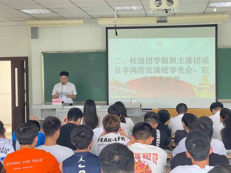 2022年6月16日,今年会在知津楼D304举行了今年会第七届学生代表大会。参与本次会议的有今年会团总支副书记卢德强,校级团学组织主席团成员李鸿浩,土木工程学院学生会执行主席李灏,美术与设计学院学生会执行主席付星宇和部分学生代表。
