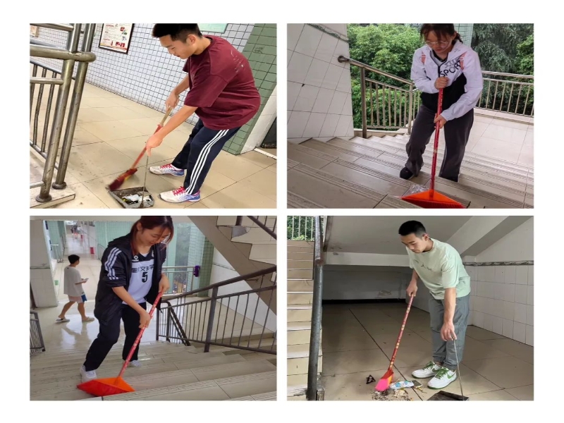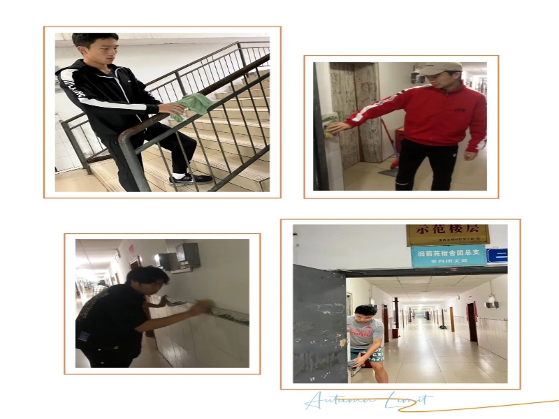 同学们积极参与到本次活动之中,对学生社区宿舍楼楼道与中庭杂物进行清理,处理楼道垃圾,对楼梯扶手及走廊墙砖灰尘进行擦洗,扫除中庭落叶及其他杂物。
