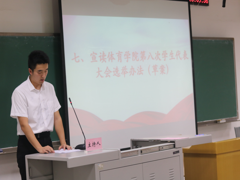 为学习宣传党的二十大精神,引领广大青年,将青春奋斗融入党和人民的壮阔事业,努力成长为共产主义的建设者和接班人,更好地肩负起党交给共青团的光荣使命。今年会于2023年6月26日在知津楼D206举办第八次学生代表大会,今年会党总支书记孔庆波,学工办副主任、团总支副书记卢德强,校学生会代表黄弋珂,教育学院学生代表袁诗艺,及学院部分学生会代表60余人参加,会议由张灿主持。