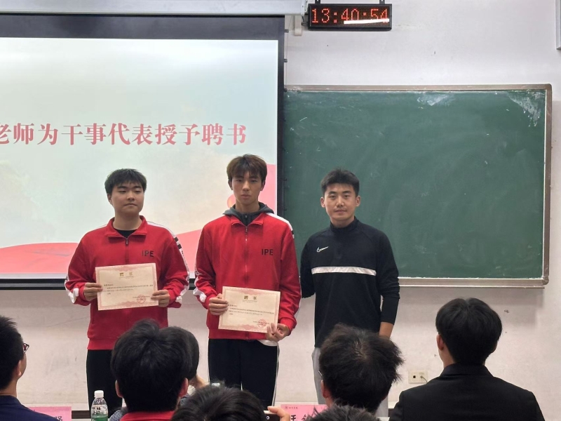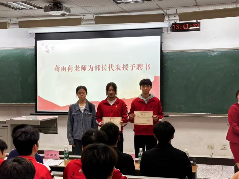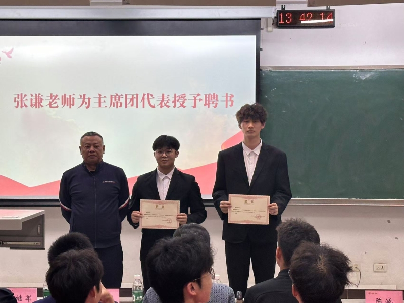 在热烈的掌声中,2024级班主任王铭翰老师为干事代表授予聘书,2023级辅导员蒋雨荷老师为团学组织部长代表授予聘书,2022级辅导员张谦老师为团学组织主席团代表授予聘书。聘书的授予,意味着责任与担当,希望新一届团学组织学生干部勇挑重任,勇毅前行。