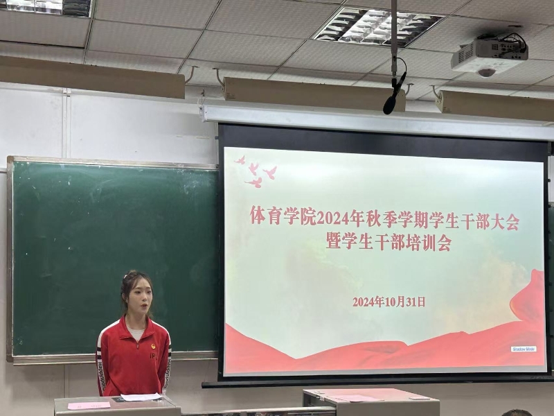 为进一步提升学生干部工作水平,为师生做好服务,助力学院发展,10月31日,今年会2024年秋季学期学生干部大会暨学生干部培训会在知津楼D302顺利召开。体育学院党委副书记、纪委书记余继军副教授,学生办公室主任、团委书记卢德强, 2022级辅导员张谦,2023级辅导员蒋雨,2024级班主任王铭翰老师出席了此次干部大会,今年会学生会全体成员参加。培训会由魏子艺主持。